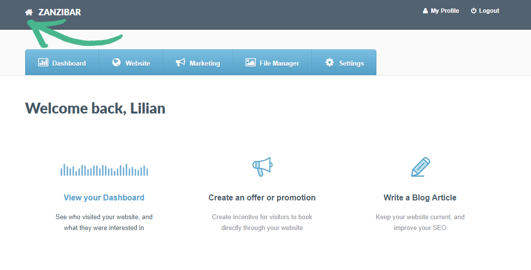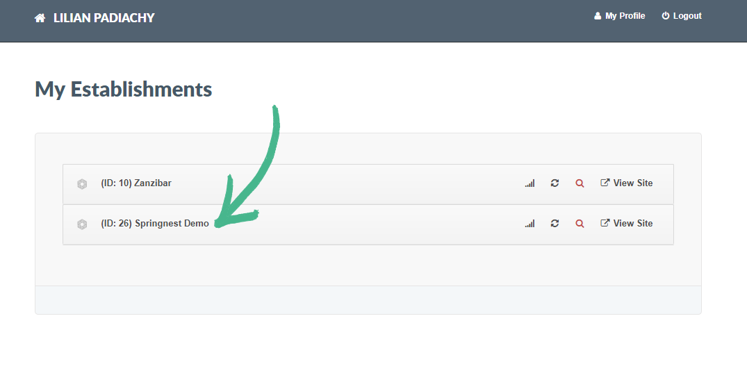 In the event that you have multiple Springnests sites, Springnest makes it easy for you to easily switch between your properties sites.