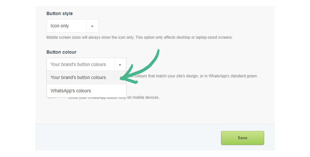 Step 5: Optionally; select the Limit on mobile box if you would like to show the WhatsApp button on mobile (only).