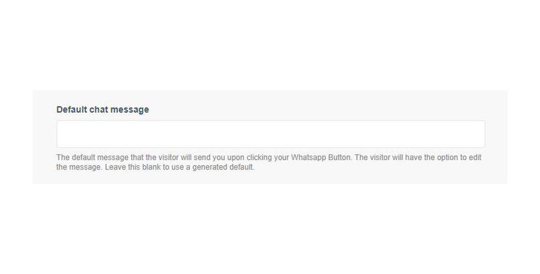 Step 3: Optionally; add a custom chat message that the visitor will send you upon clicking your Whatsapp Button. If you leave this field blank the default message will be: