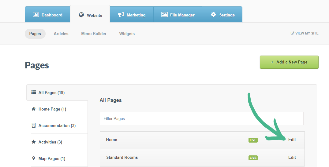 Step 1: Select the Pages section > Click Edit, next to the Home page title