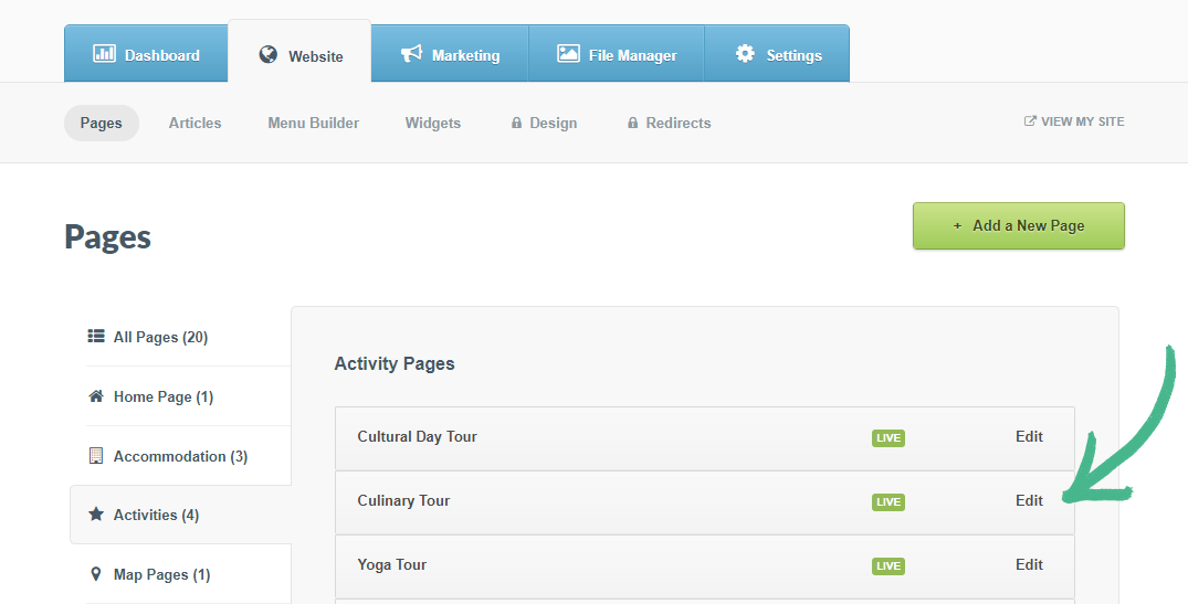 Step 1: Select the Website tab > Click Activities in the left-hand menu > Click Edit