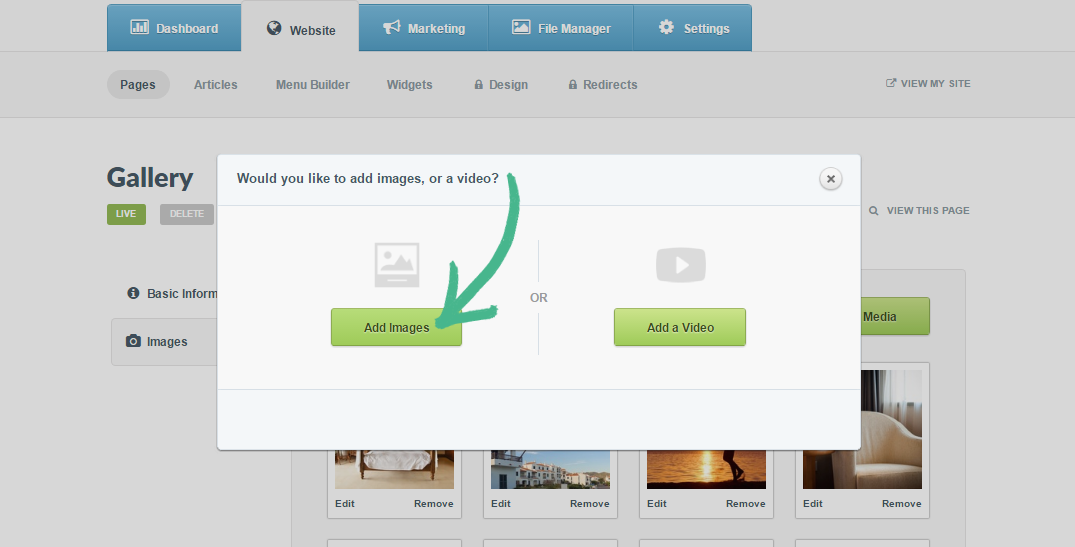 Step 2: Select Images in the left-hand menu > Click the +Add Media button > Click Add Images (or Add video)