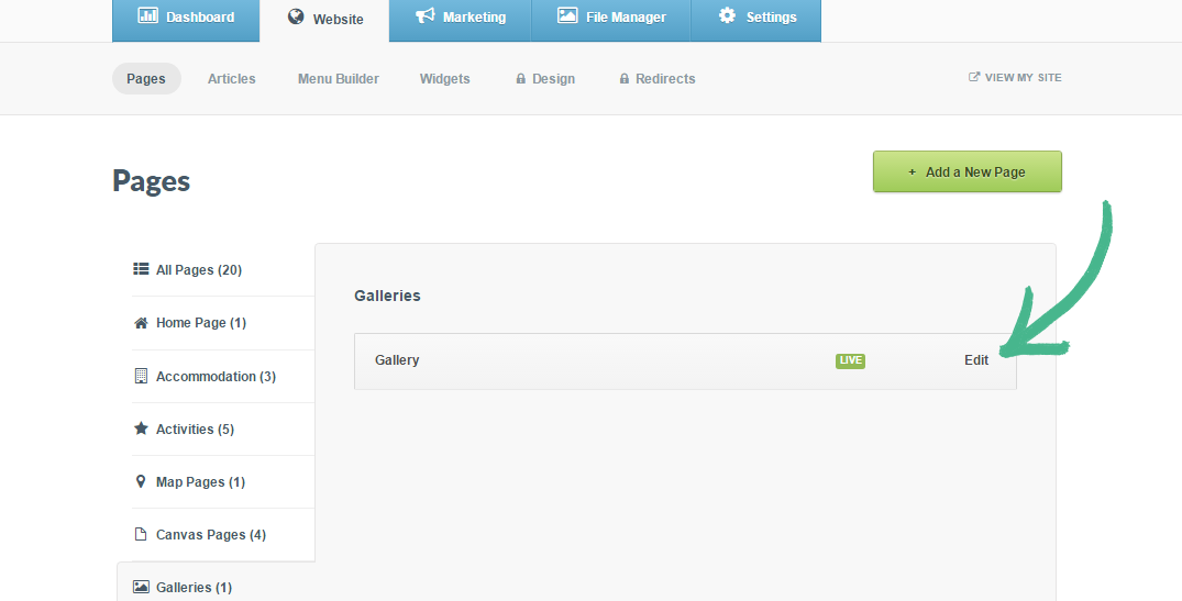 Step 1: Click the Website tab > In the Pages section, select Gallery in the left-hand menu > Click Edit