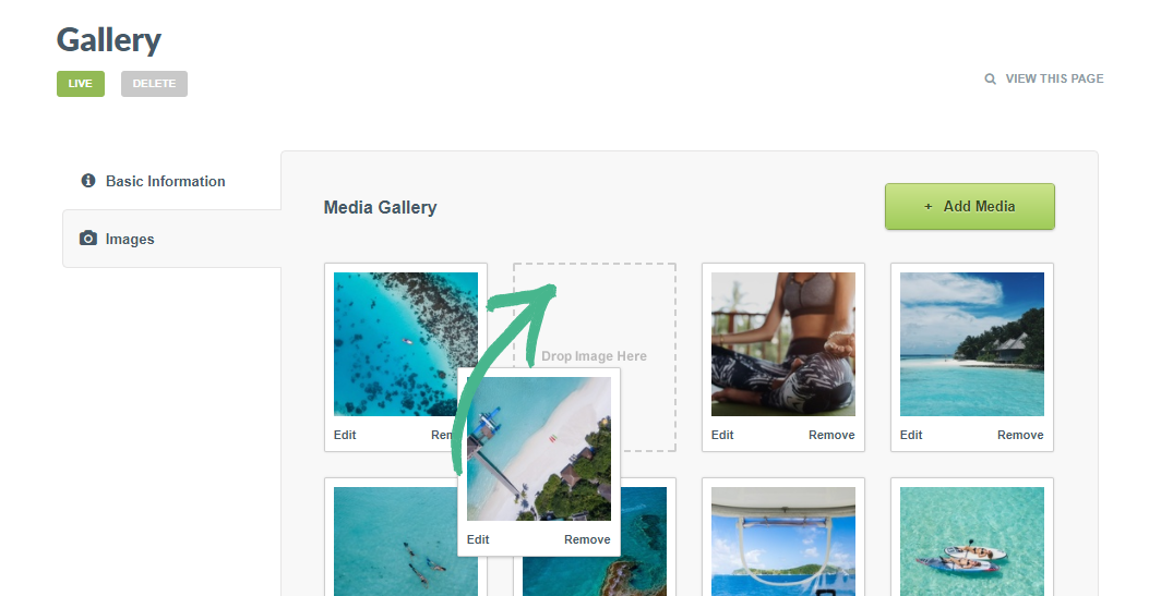 This article covers the process of uploading and re-ordering the images or videos on Gallery pages in Springnest.