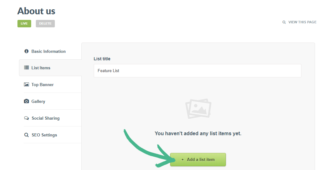 Step 2: Select List Items > click the Add a List Item button > a new List Item tab will open for you to edit.