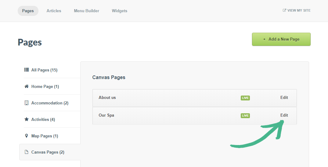 Step 1: Select the Pages Tab > Select Canvas Page from the left-hand menu > Click Edit on the Canvas Page of your choice