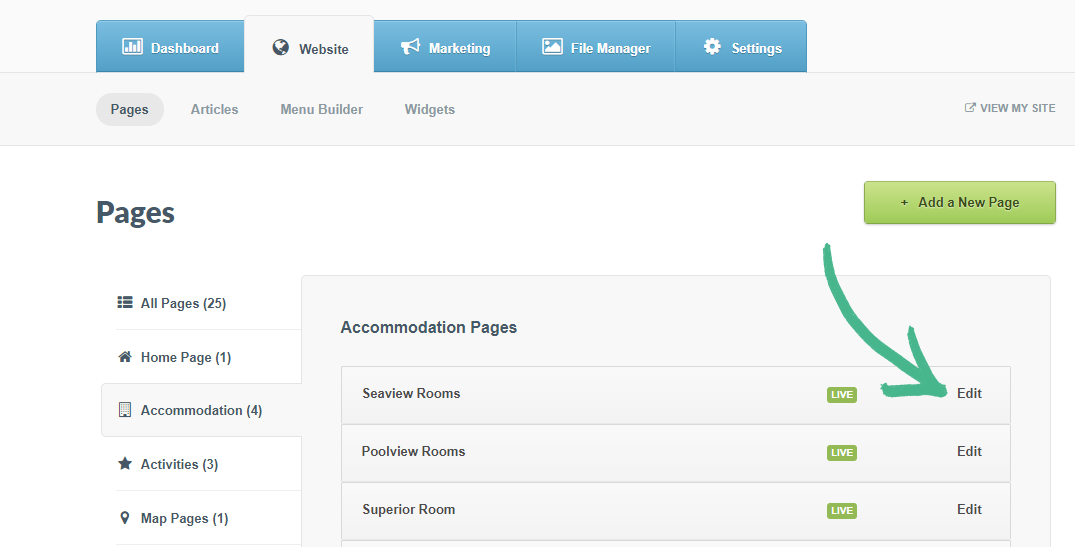 Step 1: In the Website tab, select Pages > Find the page you wish to edit SEO Settings on, Click Edit