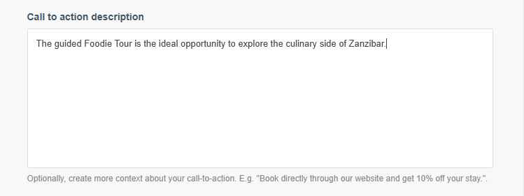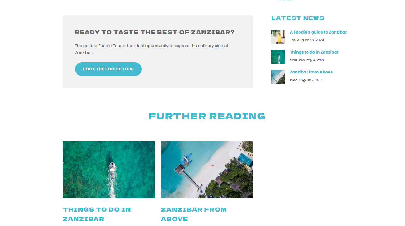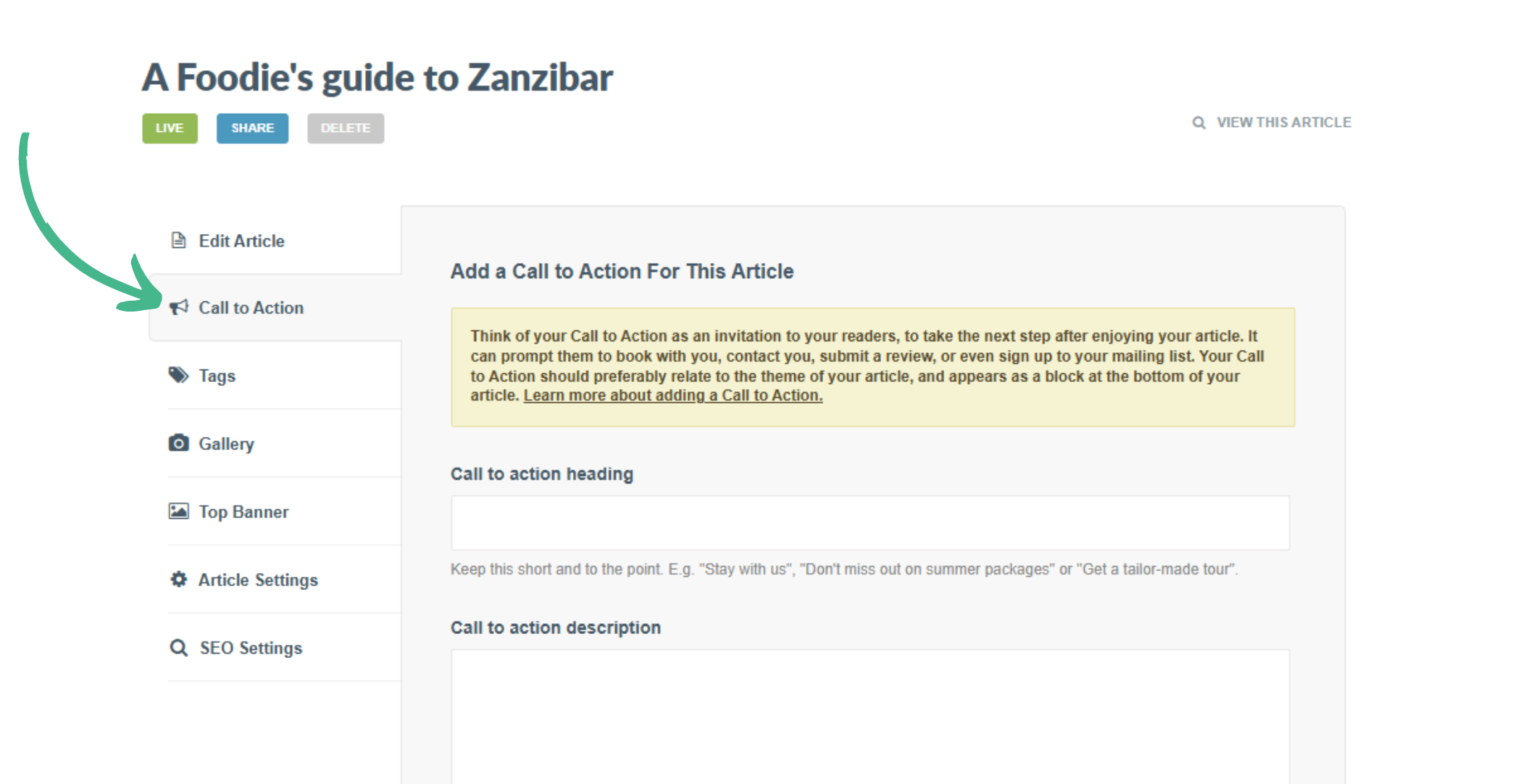 In this example we're adding a Call to Action to A Foodie's Guide to Zanzibar