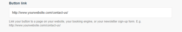 Note: Link your button to a page on your website, your booking engine, or your newsletter sign-up form. In this case we are linking the button directly to the live availability in the hotel's booking engine.